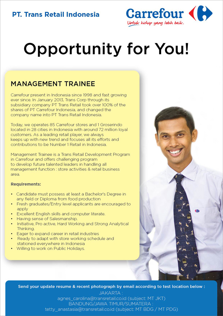 Il y a 2 jours. Lowongan kerja carrefour lulusan sma smk d3 s1 semua jurusan terbaru november. Untuk melengkapi dan menyusun berkas lamaran kerja seperti surat lamaran . Walk in interview pt trans retail indonesia fresh graduate lowongan kerja terbaru lulusan sma d3 dan s1 semua jurusan 2020. 15 contoh surat lamaran kerja ke pt carefour :